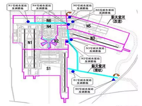 (3)另外,通过水环境系统控制措施的综合作用,北京新机场应具备综合应对50年一遇超标降雨的防内涝能力。